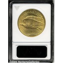 <B>1924<$20> MS64 ANACS.</B></I> Not excessively abraded, yet perhaps a bit too muted in overall appearance for consideration at the Gem level. An appealing example, nonetheless, with warm medium gold color.<BR><I>From The Garden State Collection.</B></I> <BR><BR><B>Important notice:</B> Heritage usually auctions material at the rate of 200-250 lots per hour. On some occasions eBay Live bid software or the Internet may not be able to keep up with the pace of the auction. We recommend placing a realistic absentee bid now as insurance to avoid disappointment. Occasionally the auctioneer may eliminate or reject an eBay Live bid, and the auctioneer may also reopen a lot after the close of the eBay live bidding (usually because we missed an audience bid), and may reject your bid even if it shows you as the winning bidder. By bidding via eBay Live, you agree that Heritage may award the lot to another bidder at its sole discretion under the circumstances described above or any other reasonable circumstances. Since eBay bids are not shown to us until we open the lot on the floor, we treat those bids just like floor bids. In most cases the floor responds before the eBay bid is presented to us, due to Internet lag time, so for consistency we have made it a policy that floor bids are always considered first over tie eBay live bids. Also please note that all Heritage lots purchased through eBay Live carry a 20% Buyer's Premium. Please make sure you read the Terms and Conditions before you bid.