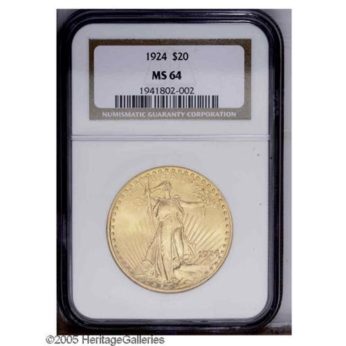 <B>1924<$20> MS64 NGC.</B></I> Radiant mint luster and surfaces that are every bit as clean as the coin is lustrous. An outstanding type example.