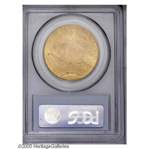 <B>1924<$20> MS64 PCGS.</B></I> Sharply struck and fully lustrous, with bright yellow-green and pink toning and a few mild marks, on each side, that limit the grade.