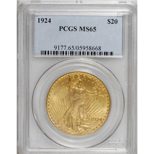 1924 $20 MS65 PCGS. A carefully preserved type represe