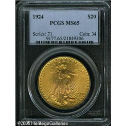 <B>1924 $20 MS65 PCGS.</B></I> A gorgeous Gem with outstanding honey-gold color and frosty luster. Lot:9683