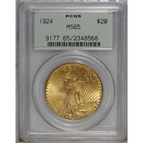 1924 $20 MS65 PCGS. Nicely struck with pretty luster a