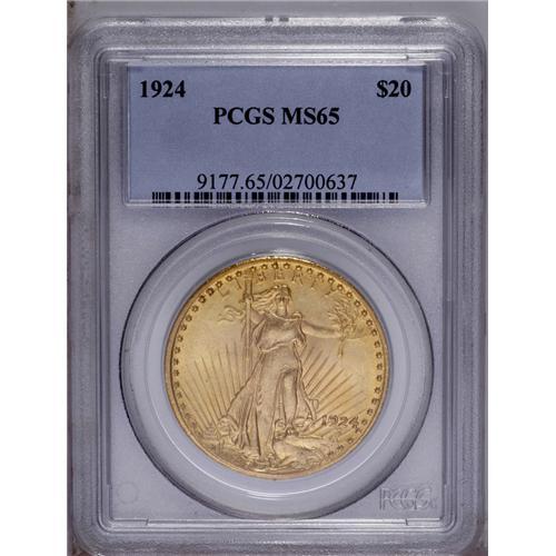 <B>1924 $20 MS65 PCGS.</B></I> The surfaces are well preserved throughout and luster is frosty as is typical for the issue. A lovely type example.
