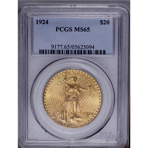 1924 $20 MS65 PCGS. Well struck and highly lustrous, w