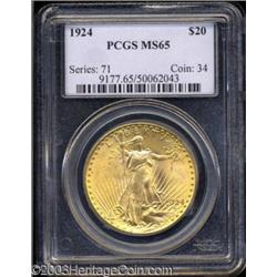 <table><tr><td><TABLE cellSpacing=0 cellPadding=0 width="100%" bgColor=#000000 border=0><TBODY> <TR><TD width="100%"><TABLE cellSpacing=1 cellPadding=3 width="100%" border=0><TBODY><TR><TD width="100%" bgColor=#79735c><FONT face=arial color=#ffffff size=3><B>Description</B> </FONT></TD></TR><TR><TD width="100%" bgColor=#ffffff><FONT face=arial size=2><B>1924 $20 MS65 PCGS.</B></I> Lovely olive and pale orange patina blankets shimmering surfaces. </FONT></TD></TR></TBODY></TABLE></TD></TR></TBODY></TABLE><BR><A name=PricesRealized></A><TABLE cellSpacing=0 cellPadding=0 width="100%" bgColor=#000000 border=0><TBODY><TR><TD width="100%"><TABLE cellSpacing=1 cellPadding=3 width="100%" border=0><TBODY><TR><TD width="100%" bgColor=#79735c><A name=PR><FONT face=arial color=#ffffff size=3><B>Previous Prices from Heritage Auctions</B> </FONT></A></TD></TR><TR><TD bgColor=#f6f6ed><TABLE cellSpacing=0 cellPadding=0 width="100%" border=1><TBODY><TR><TD align=middle width="33%"><B>Date</B></TD><TD align=middle width="33%"><B>Service</B></TD><TD align=middle width="33%"><B>Price</B></TD></TR><TR bgColor=whitesmoke><TD width="33%"><B>08/20/2002</B></TD><TD width="33%">PCGS</TD><TD width="33%">$891.25</TD></TR><TR bgColor=whitesmoke><TD width="33%"><B>08/20/2002</B></TD><TD width="33%">PCGS</TD><TD width="33%">$891.25</TD></TR><TR bgColor=whitesmoke><TD width="33%"><B>06/12/2001</B></TD><TD width="33%">NGC</TD><TD width="33%">$675.00</TD></TR><TR bgColor=whitesmoke><TD width="33%"><B>06/12/2001</B></TD><TD width="33%">NGC</TD><TD width="33%">$675.00</TD></TR><TR bgColor=whitesmoke><TD width="33%"><B>04/03/2001</B></TD><TD width="33%">NGC</TD><TD width="33%">$675.00</TD></TR><TR bgColor=whitesmoke><TD width="33%"><B>04/03/2001</B></TD><TD width="33%">NGC</TD><TD width="33%">$675.00</TD></TR><TR bgColor=whitesmoke><TD width="33%"><B>09/20/2003</B></TD><TD width="33%">PCGS</TD><TD width="33%">$1,092.50</TD></TR><TR bgColor=whitesmoke><TD width="33%"><B>09/20/2003</B></TD><TD width="33%">PCGS</TD><TD width="33%">$1,092.50</TD></TR><TR bgColor=whitesmoke><TD width="33%"><B>09/20/2003</B></TD><TD width="33%">PCGS</TD><TD width="33%">$1,725.00</TD></TR><TR bgColor=whitesmoke><TD width="33%"><B>09/20/2003</B></TD><TD width="33%">PCGS</TD><TD width="33%">$1,725.00</TD></TR><TR bgColor=whitesmoke><TD width="33%"><B>05/31/2003</B></TD><TD width="33%">NGC</TD><TD width="33%">$805.00</TD></TR><TR bgColor=whitesmoke><TD width="33%"><B>05/31/2003</B></TD><TD width="33%">NGC</TD><TD width="33%">$805.00</TD></TR><TR bgColor=whitesmoke><TD width="33%"><B>03/24/2003</B></TD><TD width="33%">NGC</TD><TD width="33%">$977.50</TD></TR><TR bgColor=whitesmoke><TD width="33%"><B>03/24/2003</B></TD><TD width="33%">NGC</TD><TD width="33%">$977.50</TD></TR><TR bgColor=whitesmoke><TD width="33%"><B>03/01/2003</B></TD><TD width="33%">PCGS</TD><TD width="33%">$1,495.00</TD></TR><TR bgColor=whitesmoke><TD width="33%"><B>03/01/2003</B></TD><TD width="33%">PCGS</TD><TD width="33%">$1,495.00</TD></TR><TR bgColor=whitesmoke><TD width="33%"><B>03/01/2003</B></TD><TD width="33%">PCGS</TD><TD width="33%">$989.00</TD></TR><TR bgColor=whitesmoke><TD width="33%"><B>03/01/2003</B></TD><TD width="33%">PCGS</TD><TD width="33%">$989.00</TD></TR><TR bgColor=whitesmoke><TD width="33%"><B>03/01/2003</B></TD><TD width="33%">NGC</TD><TD width="33%">$1,006.25</TD></TR><TR bgColor=whitesmoke><TD width="33%"><B>03/01/2003</B></TD><TD width="33%">NGC</TD><TD width="33%">$1,006.25</TD></TR><TR bgColor=whitesmoke><TD width="33%"><B>03/01/2003</B></TD><TD width="33%">PCGS</TD><TD width="33%">$1,265.00</TD></TR><TR bgColor=whitesmoke><TD width="33%"><B>03/01/2003</B></TD><TD width="33%">PCGS</TD><TD width="33%">$1,265.00</TD></TR><TR bgColor=whitesmoke><TD width="33%"><B>01/11/2003</B></TD><TD width="33%">NGC</TD><TD width="33%">$862.50</TD></TR><TR bgColor=whitesmoke><TD width="33%"><B>01/11/2003</B></TD><TD width="33%">NGC</TD><TD width="33%">$862.50</TD></TR><TR bgColor=whitesmoke><TD width="33%"><B>01/11/2003</B></TD><TD width="33%">NGC</TD><TD width="33%">$862.50</TD></TR><TR bgColor=whitesmoke><TD width="33%"><B>01/11/2003</B></TD><TD width="33%">NGC</TD><TD width="33%">$862.50</TD></TR><TR bgColor=whitesmoke><TD width="33%"><B>01/11/2003</B></TD><TD width="33%">PCGS</TD><TD width="33%">$891.25</TD></TR><TR bgColor=whitesmoke><TD width="33%"><B>01/11/2003</B></TD><TD width="33%">PCGS</TD><TD width="33%">$891.25</TD></TR><TR bgColor=whitesmoke><TD width="33%"><B>11/25/2002</B></TD><TD width="33%">NGC</TD><TD width="33%">$920.00</TD></TR><TR bgColor=whitesmoke><TD width="33%"><B>11/25/2002</B></TD><TD width="33%">NGC</TD><TD width="33%">$920.00</TD></TR><TR bgColor=whitesmoke><TD width="33%"><B>11/25/2002</B></TD><TD width="33%">PCGS</TD><TD width="33%">$891.25</TD></TR><TR bgColor=whitesmoke><TD width="33%"><B>11/25/2002</B></TD><TD width="33%">PCGS</TD><TD width="33%">$891.25</TD></TR><TR bgColor=whitesmoke><TD width="33%"><B>11/23/2002</B></TD><TD width="33%">PCGS</TD><TD width="33%">$1,265.00</TD></TR><TR bgColor=whitesmoke><TD width="33%"><B>11/23/2002</B></TD><TD width="33%">PCGS</TD><TD width="33%">$1,265.00</TD></TR><TR bgColor=whitesmoke><TD width="33%"><B>11/23/2002</B></TD><TD width="33%">PCGS</TD><TD width="33%">$920.00</TD></TR><TR bgColor=whitesmoke><TD width="33%"><B>11/23/2002</B></TD><TD width="33%">PCGS</TD><TD width="33%">$920.00</TD></TR><TR bgColor=whitesmoke><TD width="33%"><B>09/28/2002</B></TD><TD width="33%">PCGS</TD><TD width="33%">$1,610.00</TD></TR><TR bgColor=whitesmoke><TD width="33%"><B>09/28/2002</B></TD><TD width="33%">PCGS</TD><TD width="33%">$1,610.00</TD></TR><TR bgColor=whitesmoke><TD width="33%"><B>06/08/2002</B></TD><TD width="33%">PCGS</TD><TD width="33%">$805.00</TD></TR><TR bgColor=whitesmoke><TD width="33%"><B>06/08/2002</B></TD><TD width="33%">PCGS</TD><TD width="33%">$805.00</TD></TR><TR bgColor=whitesmoke><TD width="33%"><B>04/28/2002</B></TD><TD width="33%">PCGS</TD><TD width="33%">$776.25</TD></TR><TR bgColor=whi