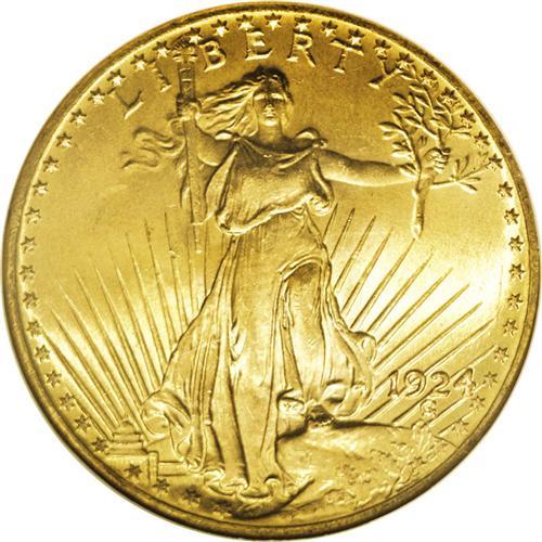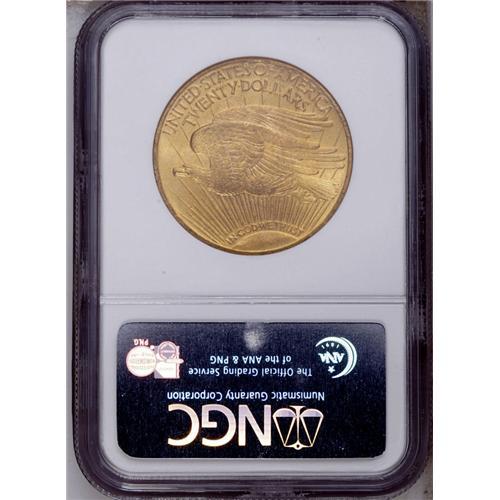 <B>1924 $20 MS66 NGC.</B></I> Potent cartwheel luster and well preserved fields confirm the quality of this dazzling lemon-gold premium Gem. The strike is meticulous, and only a moderate graze on the left (facing) leg precludes a finer grade. Saint-Gaudens Double Eagles in high grades are under tremendous demand from gold type collectors.