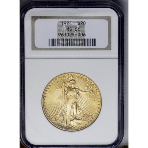 1924 $20 MS66 NGC. The 1924, with a mintage of over 4 1924