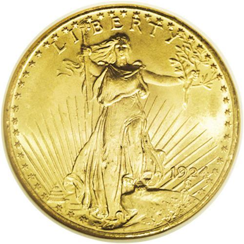 <B>1924<$20> MS66 NGC.</B></I> Well-preserved type coins have cachet, the allure of a "common coin" in an uncommon grade. This is one such piece, boldly impressed with outstanding luster. The fresh yellow-gold surfaces have outstanding luster and minimal marks. Small copper spots are noted at Liberty's legs.