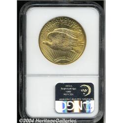 <B>1924<$20> MS66 NGC.</B></I> There are a few tiny luster breaks on each side but one hardly notices these as the luster is so thick and luxuriant, varying in color from pale pink to deeper yellow-gold. Fully defined with a crisp, medal-like strike in all areas. <BR><BR><B>Important notice:</B> Heritage usually auctions material at the rate of 200-250 lots per hour. On some occasions eBay Live bid software or the Internet may not be able to keep up with the pace of the auction. We recommend placing a realistic absentee bid now as insurance to avoid disappointment. Occasionally the auctioneer may eliminate or reject an eBay Live bid, and the auctioneer may also reopen a lot after the close of the eBay live bidding (usually because we missed an audience bid), and may reject your bid even if it shows you as the winning bidder. By bidding via eBay Live, you agree that Heritage may award the lot to another bidder at its sole discretion under the circumstances described above or any other reasonable circumstances. Since eBay bids are not shown to us until we open the lot on the floor, we treat those bids just like floor bids. In most cases the floor responds before the eBay bid is presented to us, due to Internet lag time, so for consistency we have made it a policy that floor bids are always considered first over tie eBay live bids. Also please note that all Heritage lots purchased through eBay Live carry a 20% Buyer's Premium. Please make sure you read the Terms and Conditions before you bid.