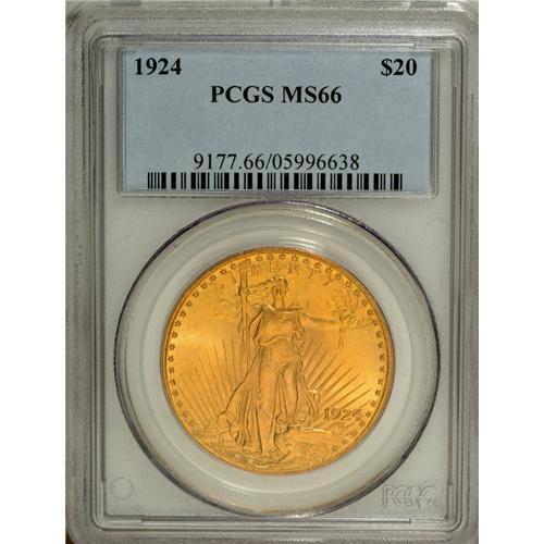 1924 $20 MS66 PCGS. Another gem example of the St. Gau