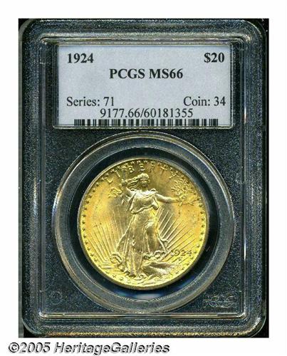 <B>1924<$20> MS66 PCGS.</B></I> Highly lustrous with only a few light, scattered abrasions. A desirable type coin in this lofty grade.