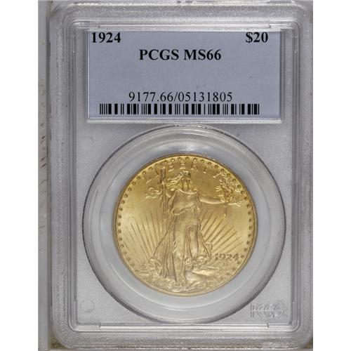 1924 $20 MS66 PCGS. Lovely peach-gold, orange, and min