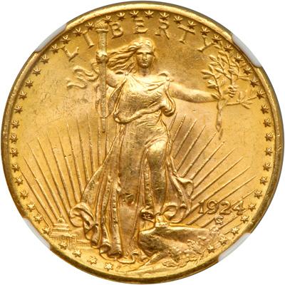 1924 $20. NGC graded MS-63. Nicely toned.