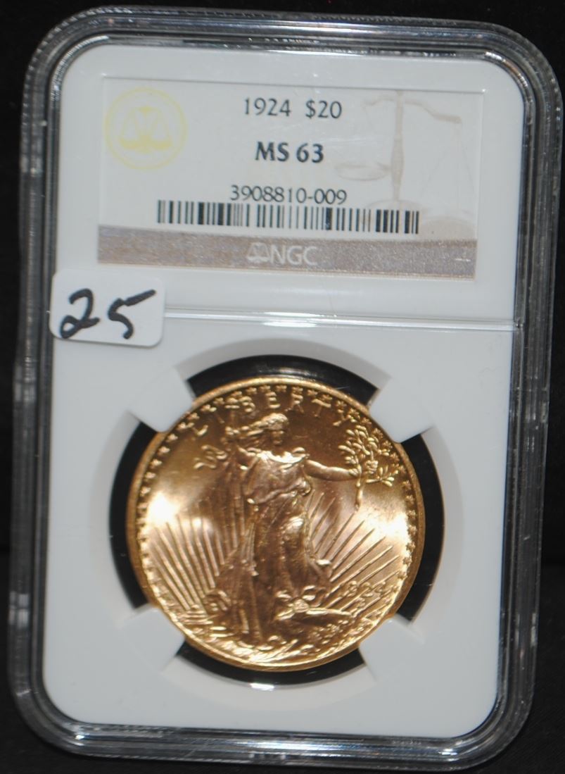 1924 $20 ST. GAUDENS GOLD COIN - NGC MS63 (SELLER SAYS THE COIN IS PQ++ AND IS GROSSLY UNDER GRADED)