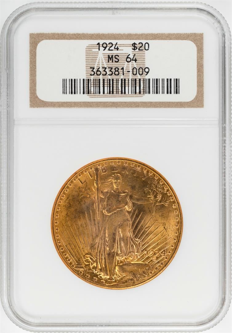 One 1924 $20 Saint Gaudens Double Eagle Gold Coin NGC MS64. NGC Certified.