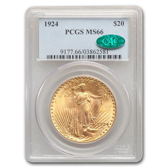 One piece 1924 $20 Saint-Gaudens Gold Double Eagle MS-66 PCGS CAC