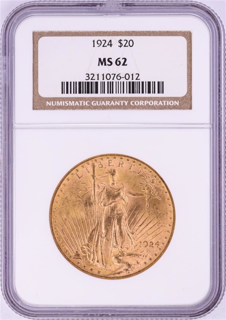 One 1924 $20 St. Gaudens Double Eagle Gold Coin NGC MS62. NGC Certified.