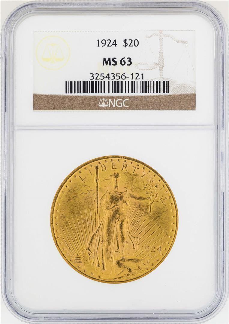 One 1924 $20 St. Gaudens Double Eagle Gold Coin NGC MS63. NGC Certified.