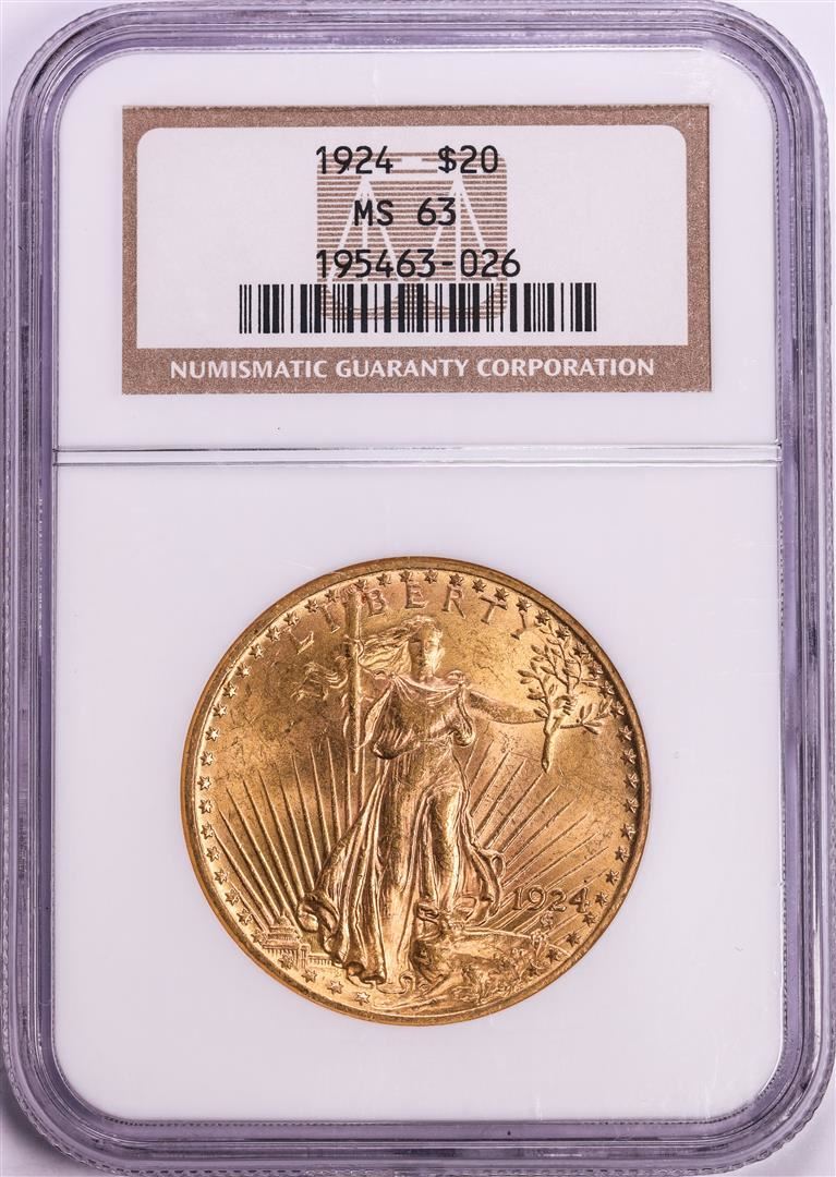 One 1924 $20 St. Gaudens Double Eagle Gold Coin NGC MS63. NGC Certified.