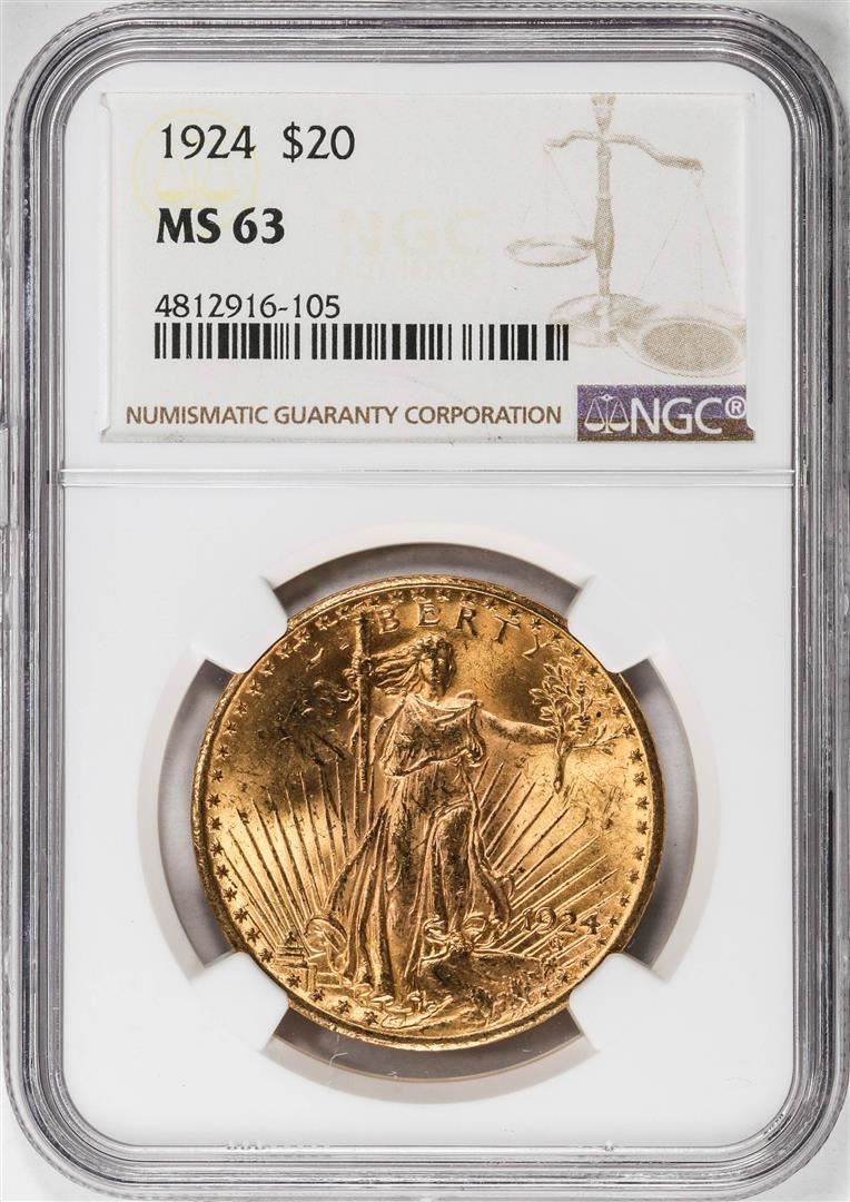 One 1924 $20 St Gaudens Double Eagle Gold Coin NGC MS63. NGC Certified.
