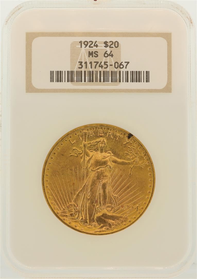 One 1924 $20 St. Gaudens Double Eagle Gold Coin. NGC certified.