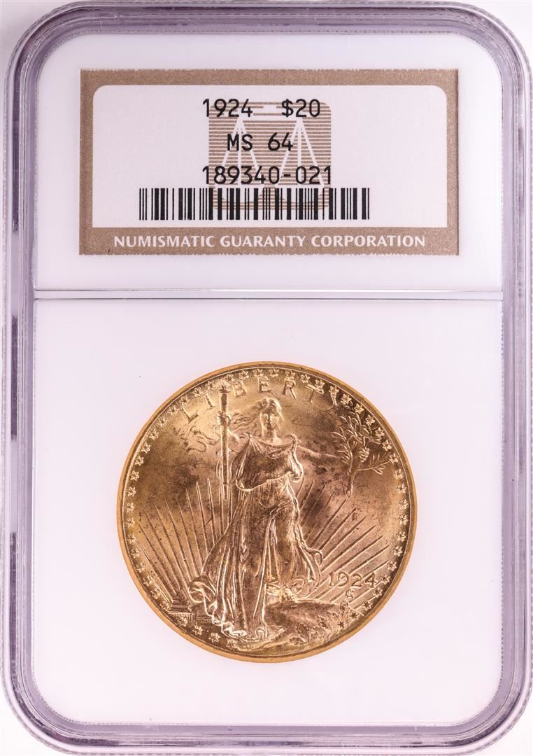 One 1924 $20 St. Gaudens Double Eagle Gold Coin NGC MS64. NGC Certified.