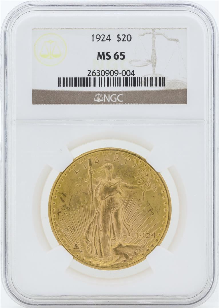 One 1924 $20 St. Gaudens Double Eagle Gold Coin NGC MS65. NGC Certified.