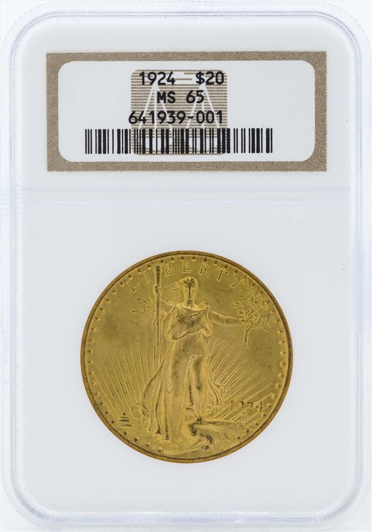 One 1924 $20 St. Gaudens Double Eagle Gold Coin NGC MS65. NGC Certified.