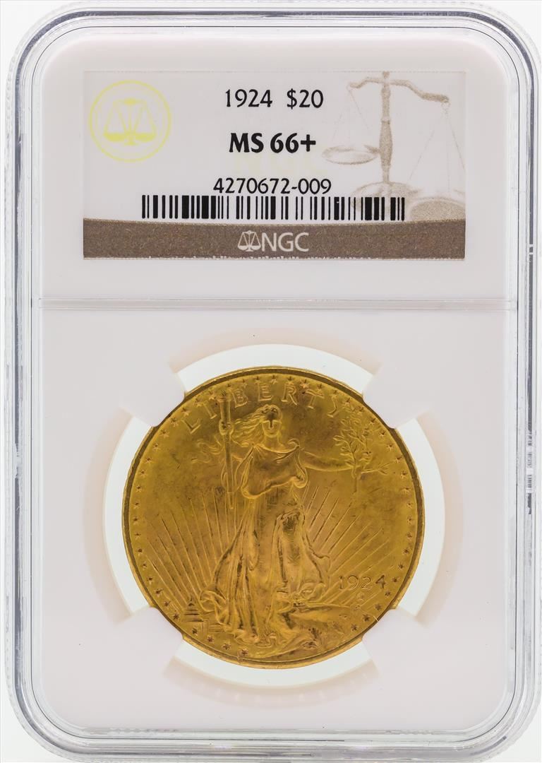 One 1924 $20 St. Gaudens Double Eagle Gold Coin NGC MS66+. NGC Certified.