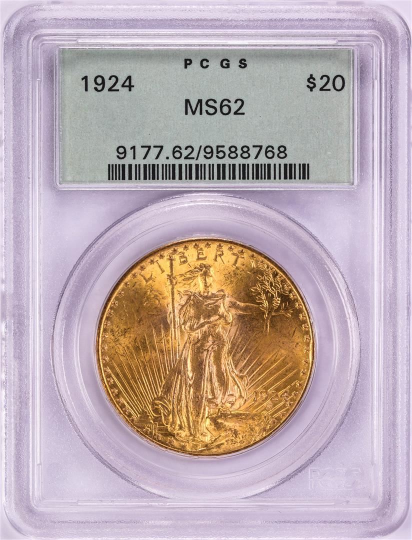 One 1924 $20 St. Gaudens Double Eagle Gold Coin PCGS MS62 Old Green Holder. PCGS Graded.