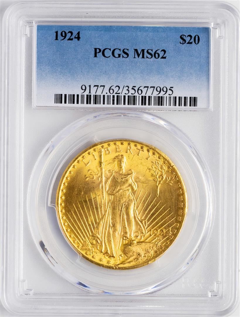 One 1924 $20 St. Gaudens Double Eagle Gold Coin PCGS MS62. PCGS Graded.