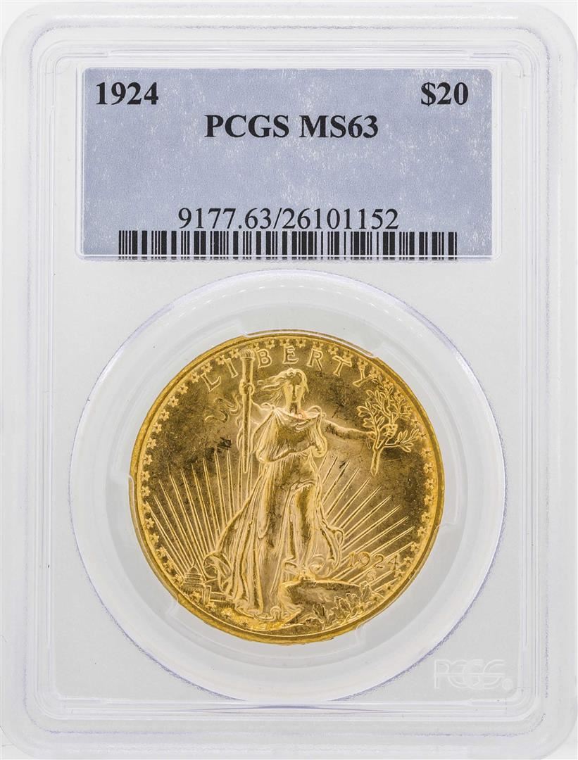One 1924 $20 St. Gaudens Double Eagle Gold Coin PCGS MS63. PCGS Certified.