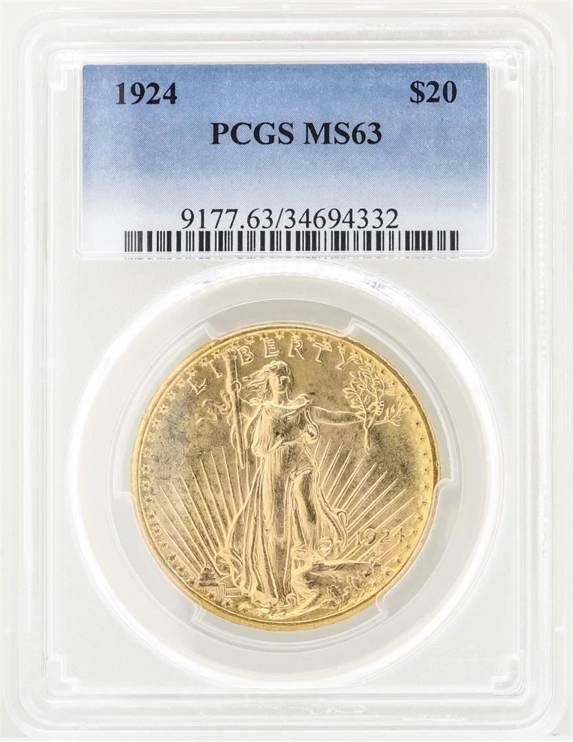One 1924 $20 St. Gaudens Double Eagle Gold Coin PCGS MS63. PCGS Graded.