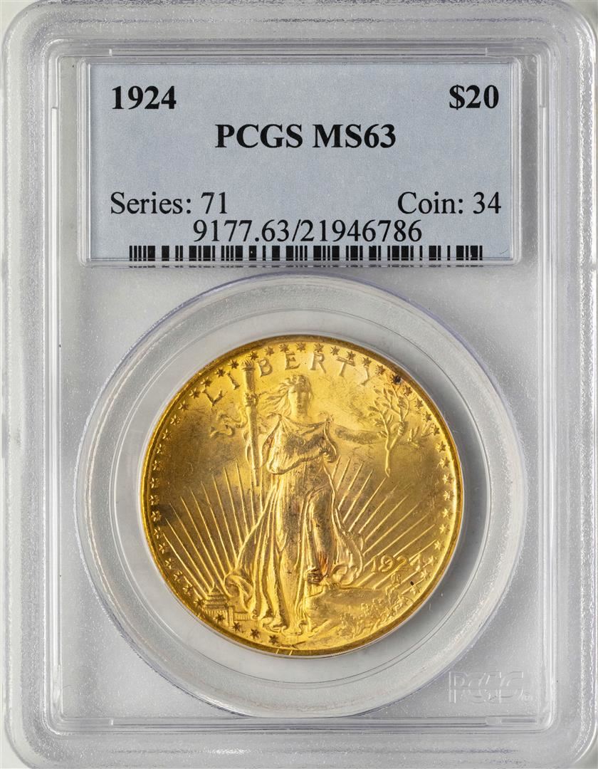 One 1924 $20 St. Gaudens Double Eagle Gold Coin PCGS MS63. PCGS Graded.