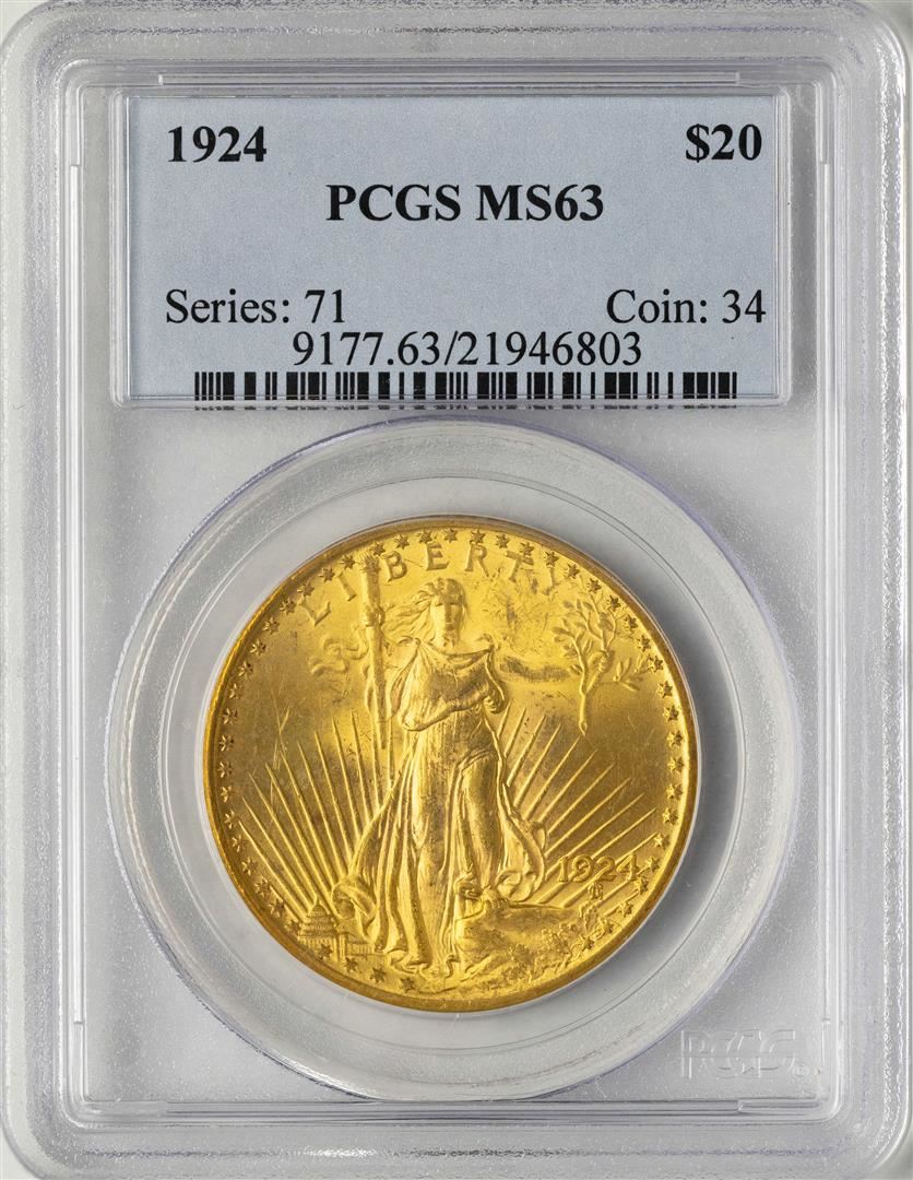 One 1924 $20 St. Gaudens Double Eagle Gold Coin PCGS MS63. PCGS Graded.