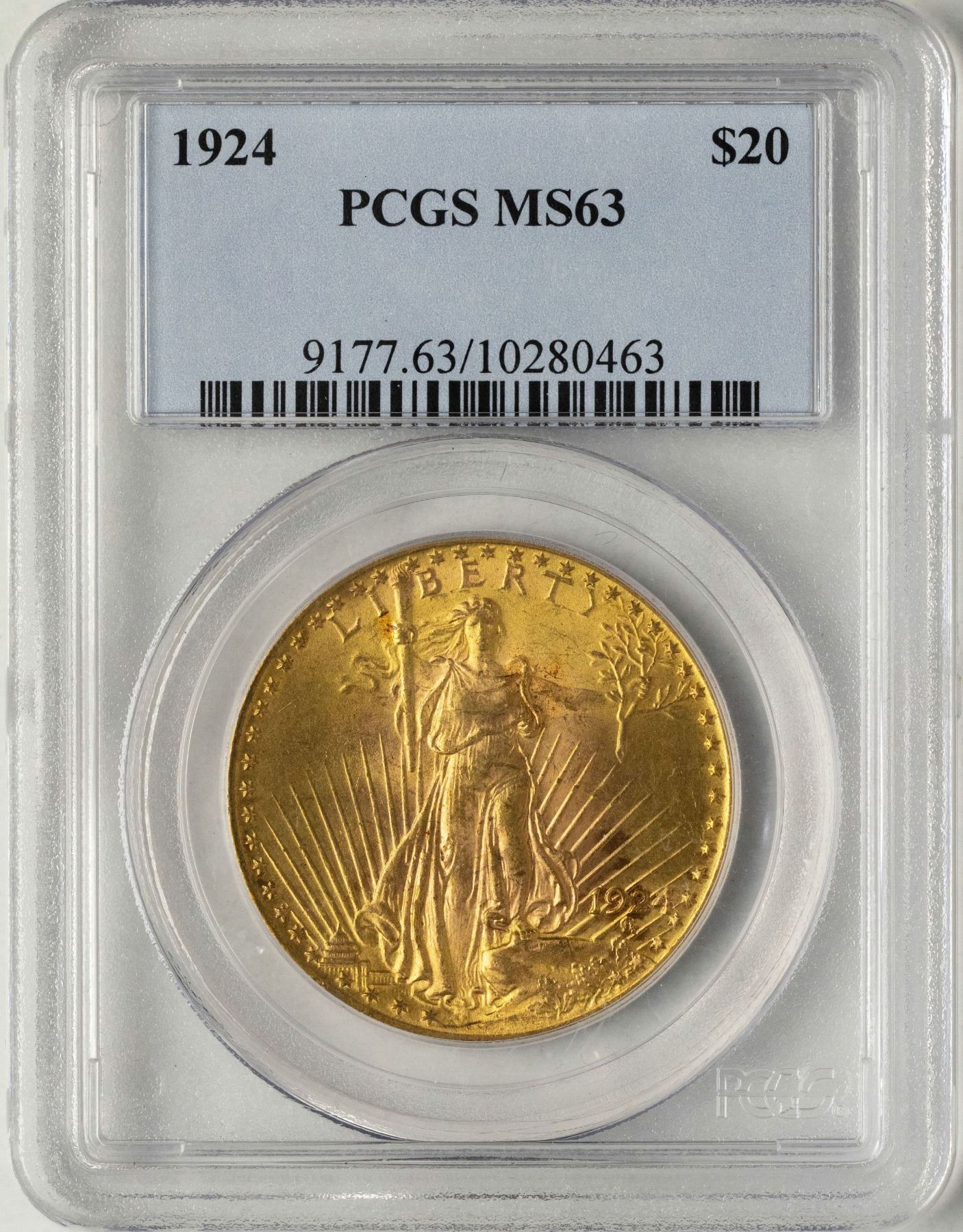 One 1924 $20 St. Gaudens Double Eagle Gold Coin PCGS MS63.