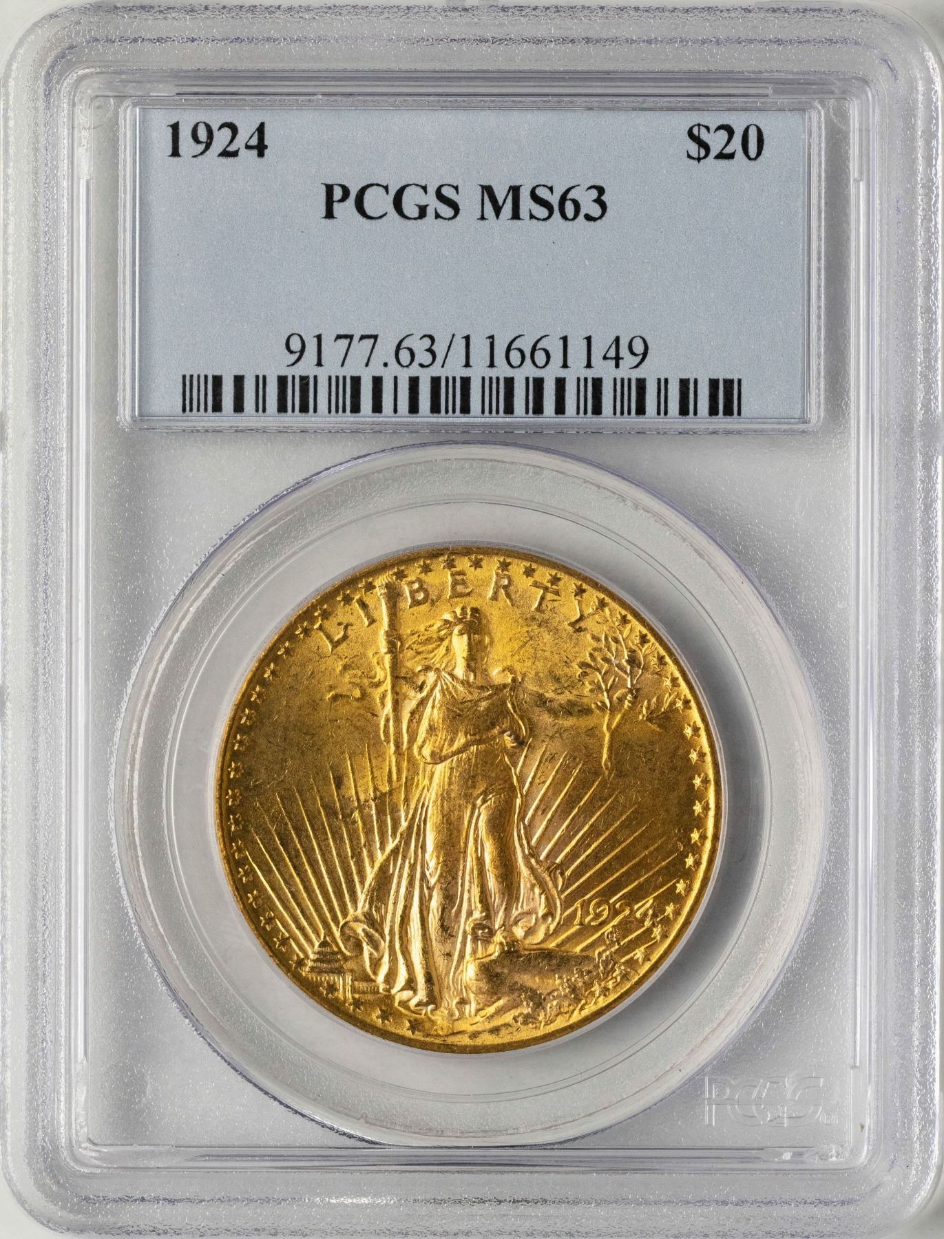 One 1924 $20 St. Gaudens Double Eagle Gold Coin PCGS MS63.