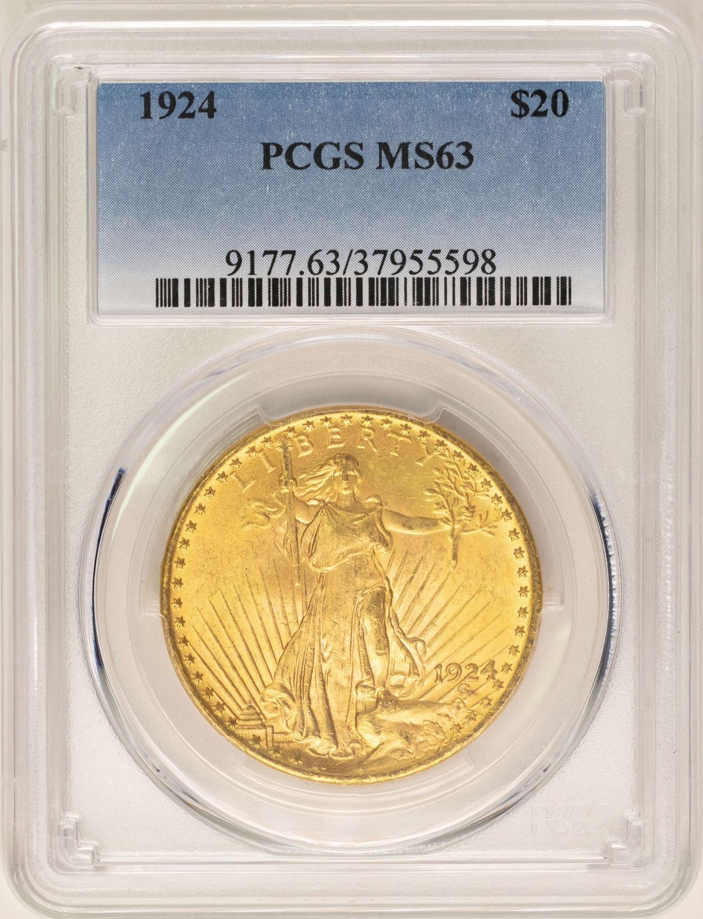 One 1924 $20 St. Gaudens Double Eagle Gold Coin PCGS MS63.