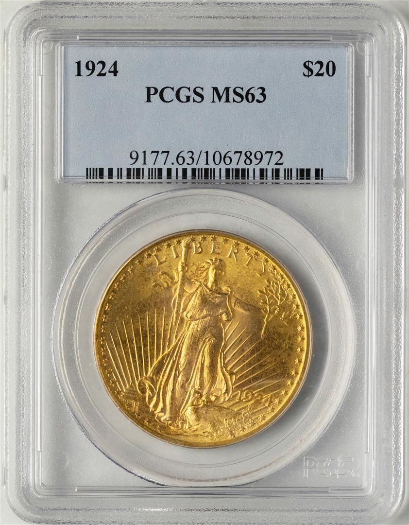 One 1924 $20 St. Gaudens Double Eagle Gold Coin PCGS MS63. PCGS Graded.