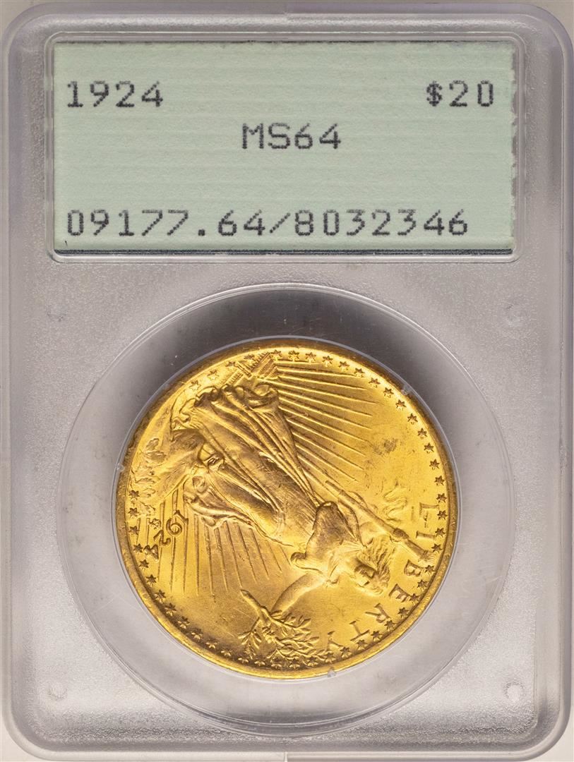 One 1924 $20 St. Gaudens Double Eagle Gold Coin PCGS MS64 Old Green Rattler. PCGS Graded.