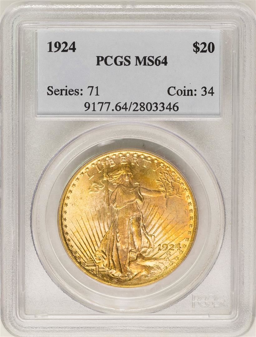 One 1924 $20 St. Gaudens Double Eagle Gold Coin PCGS MS64. PCGS Graded.