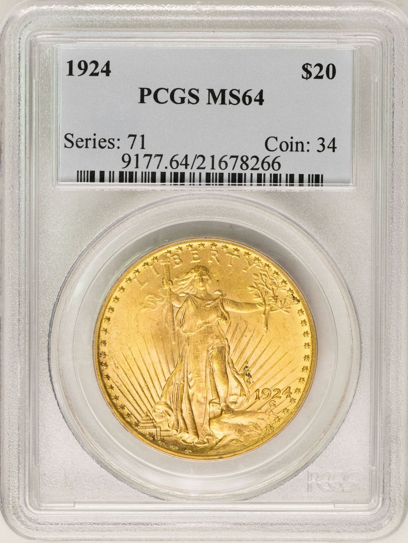 One 1924 $20 St. Gaudens Double Eagle Gold Coin PCGS MS64.