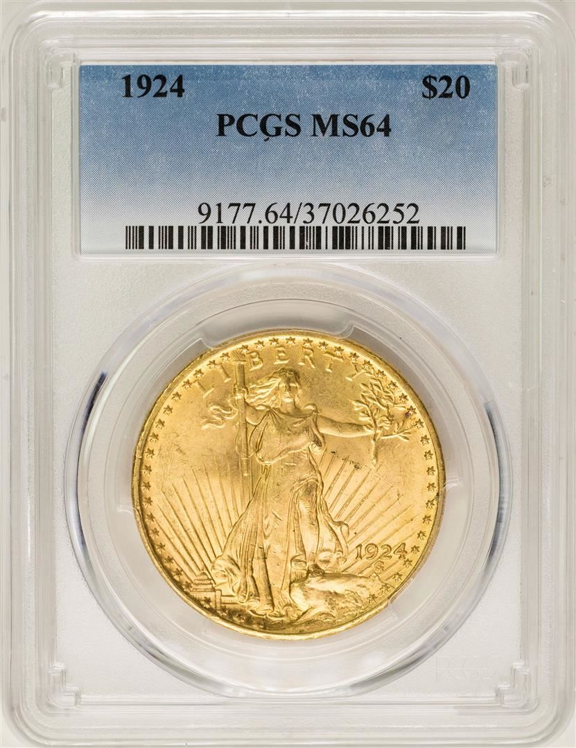 One 1924 $20 St. Gaudens Double Eagle Gold Coin PCGS MS64. PCGS Graded.