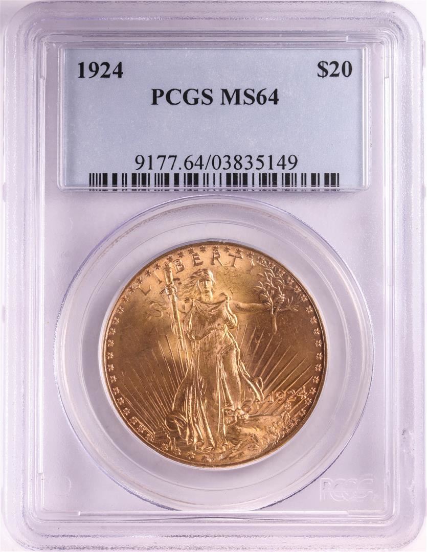 One 1924 $20 St. Gaudens Double Eagle Gold Coin PCGS MS64. PCGS Graded.