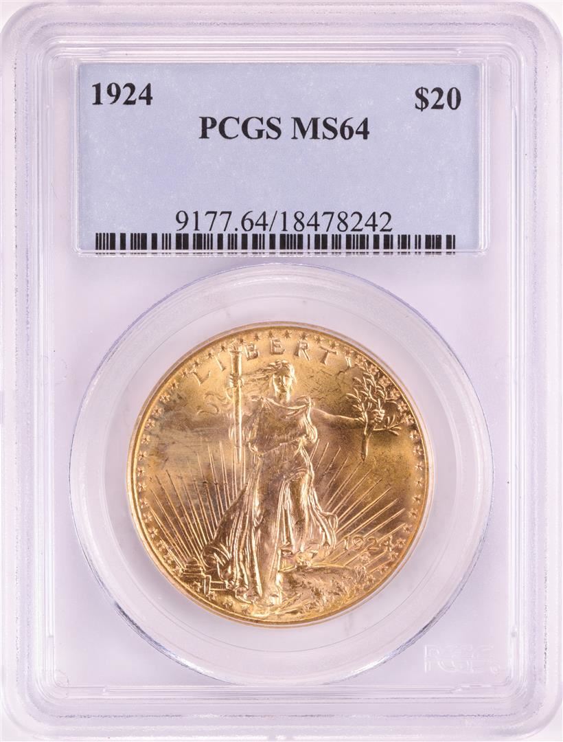 One 1924 $20 St. Gaudens Double Eagle Gold Coin PCGS MS64. PCGS Graded.