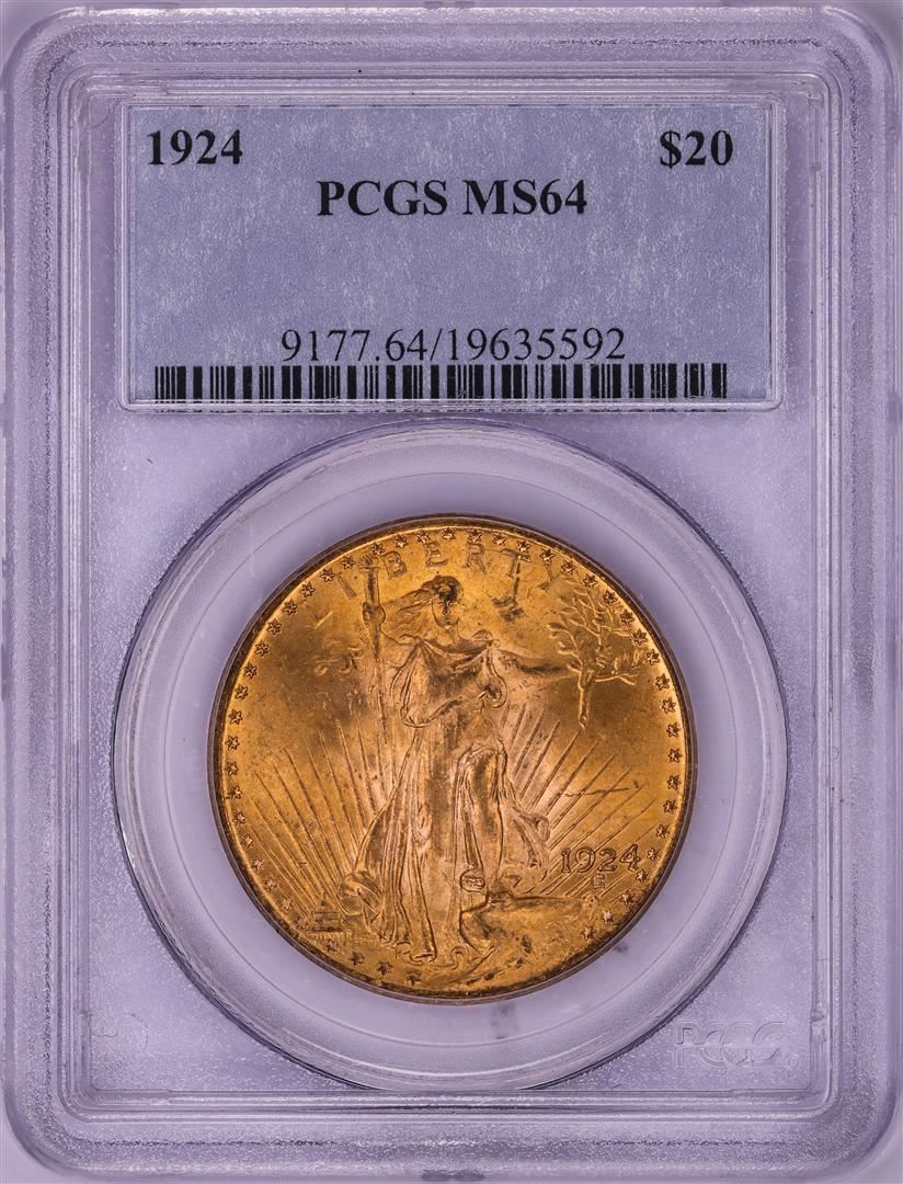One 1924 $20 St. Gaudens Double Eagle Gold Coin PCGS MS64. PCGS Graded.