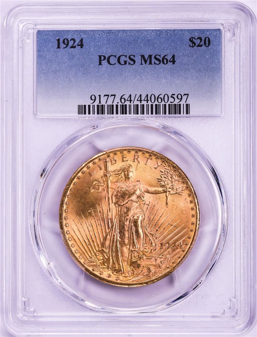 One 1924 $20 St. Gaudens Double Eagle Gold Coin PCGS MS64.