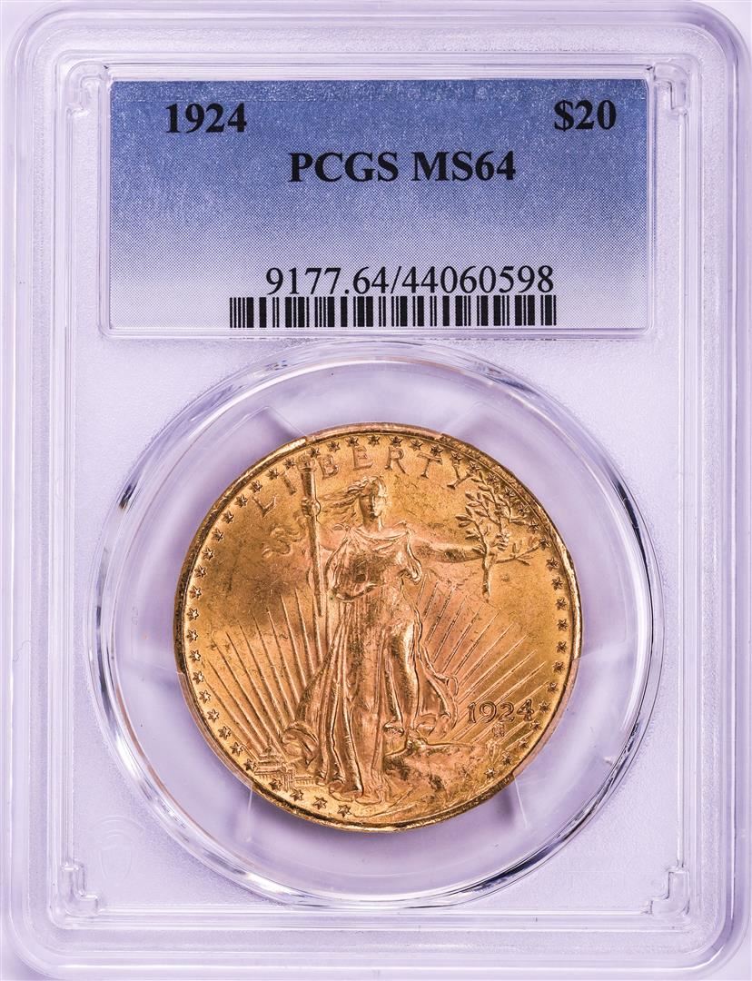 One 1924 $20 St. Gaudens Double Eagle Gold Coin PCGS MS64.
