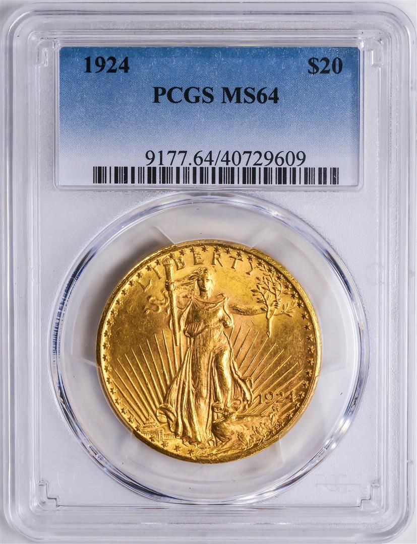 One 1924 $20 St. Gaudens Double Eagle Gold Coin PCGS MS64.