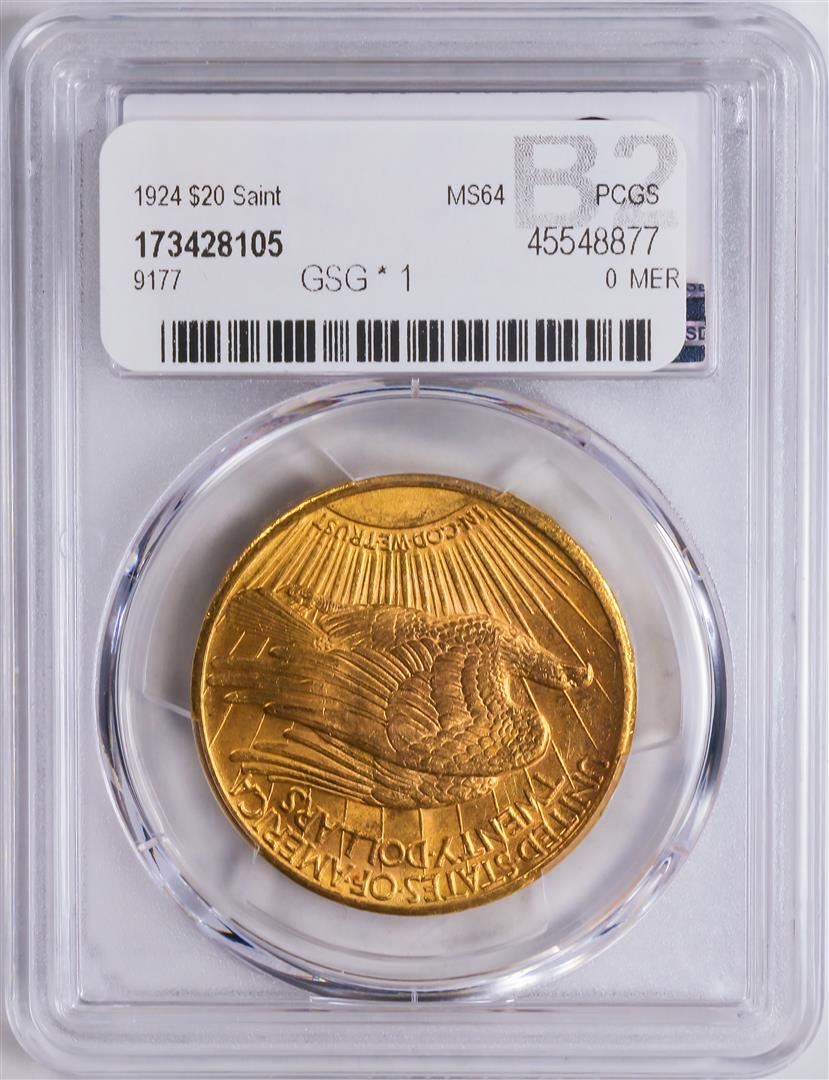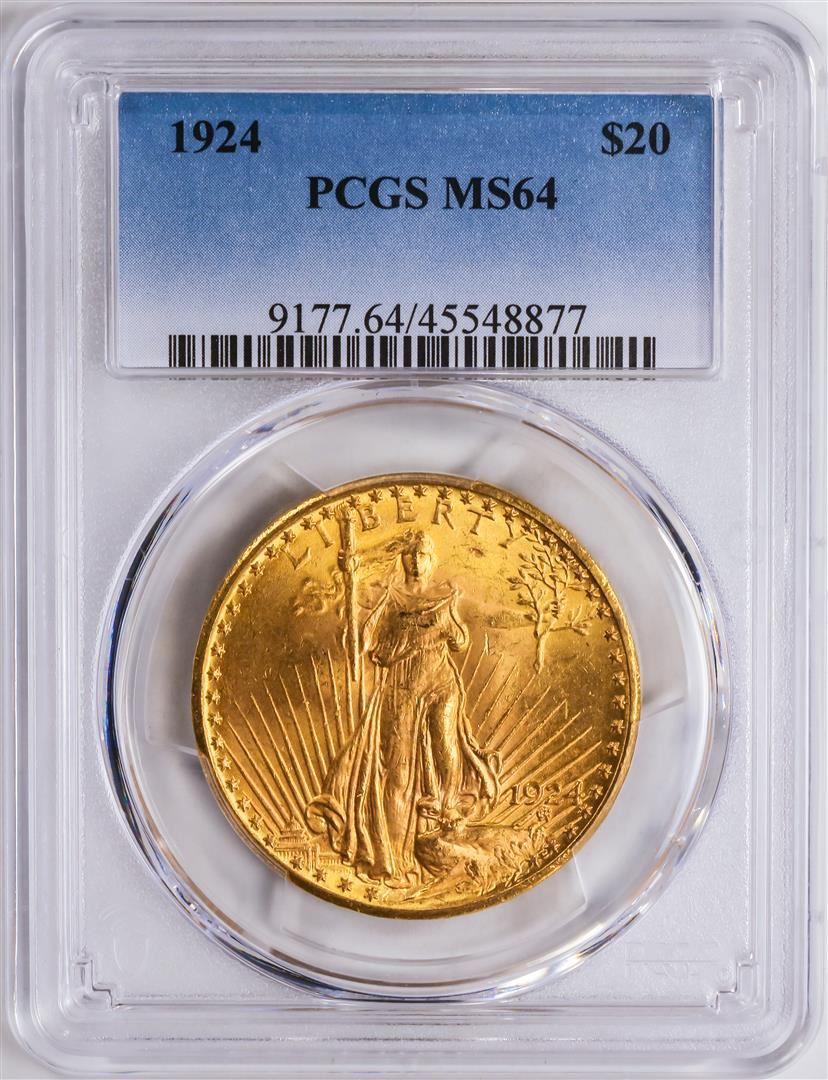 One 1924 $20 St. Gaudens Double Eagle Gold Coin PCGS MS64.